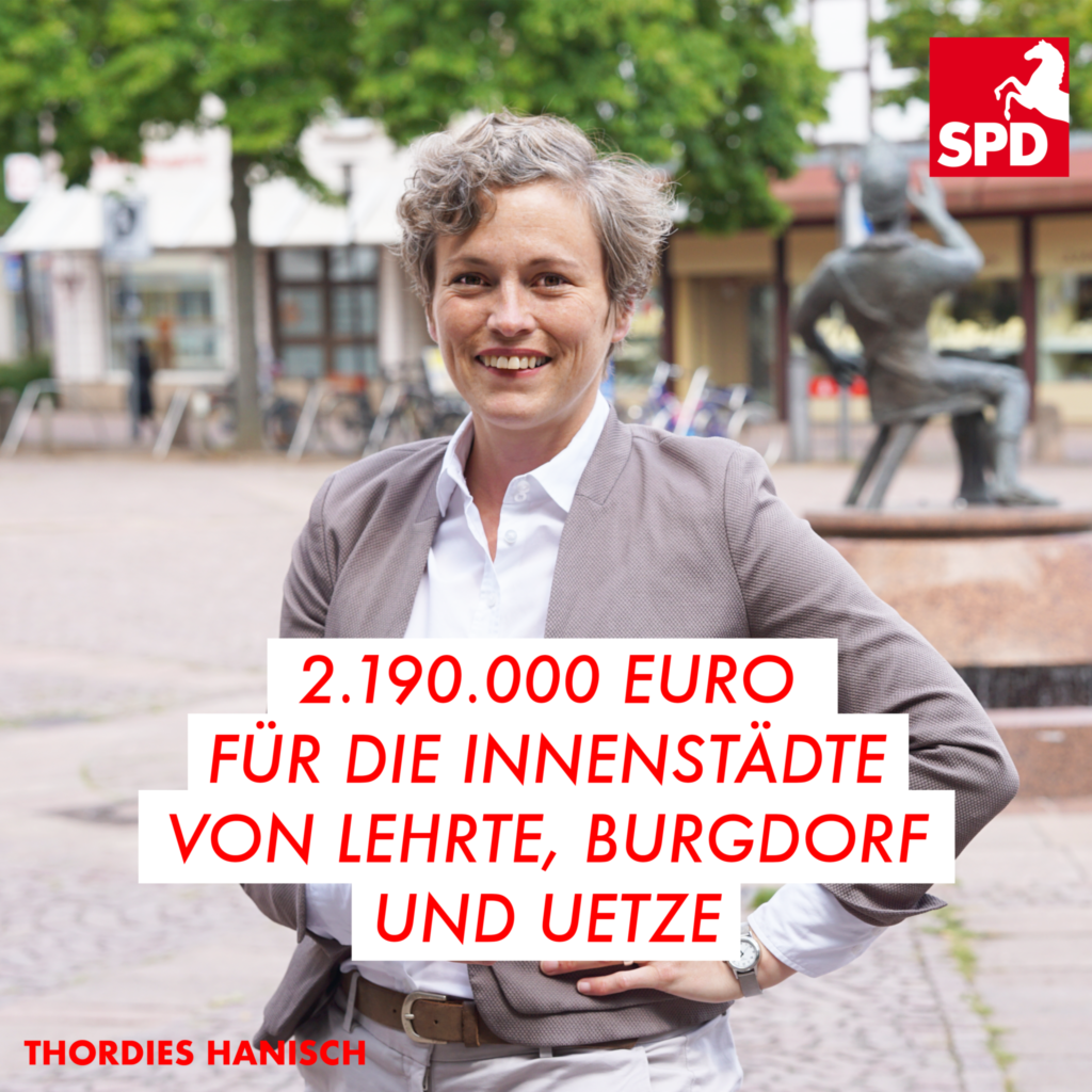 Neues aus dem Landtag: Ich freue mich sehr, dass im Zuge des Sofortprogramms „Perspektive Innenstadt“ für die Entwicklung von Lehrte, Burgdorf und Uetze 2.190.000 Euro Fördermittel bereitstehen.